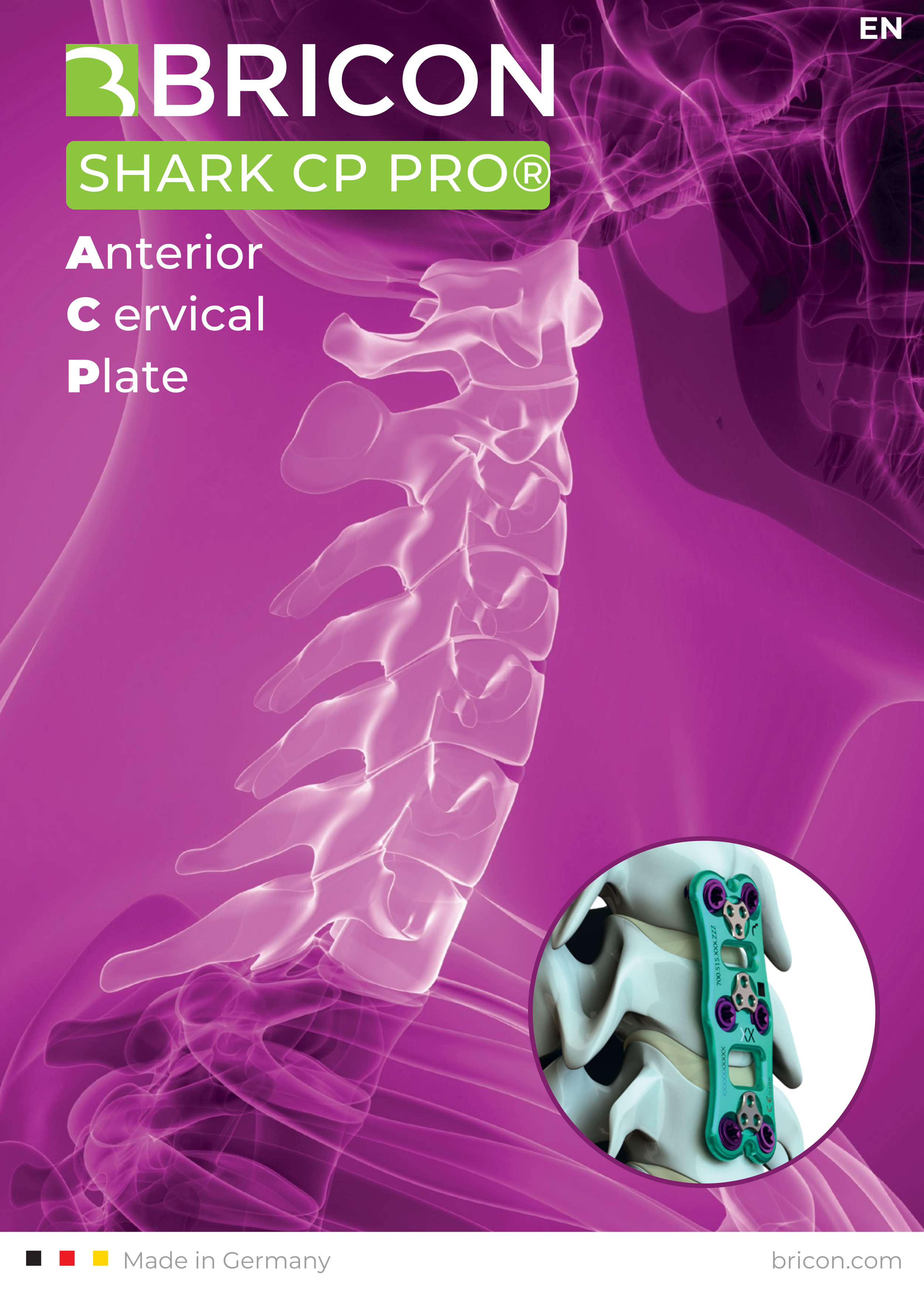 A great leap on basis of the proven SHARK CP® system. SHARK CP PRO® has a completely new developed locking mechanism ensuring the optimum combination of safety and enhanced usability. The fully optimised instrumentation complement the implant system in setting a new clinical standard for anterior cervical plate.